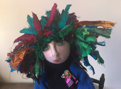 I'm still not sure about her hair and she needs something to hold. Hopefully I will get time to go to Hobby Craft on Friday after work and buy her one or two silk flowers. Miriam and I decided yesterday that her hair needs to be in bunches. Her little badge is one I bought in South Africa but comes from South America. It is tiny and hand made, I wouldn't like to make something that fiddly.